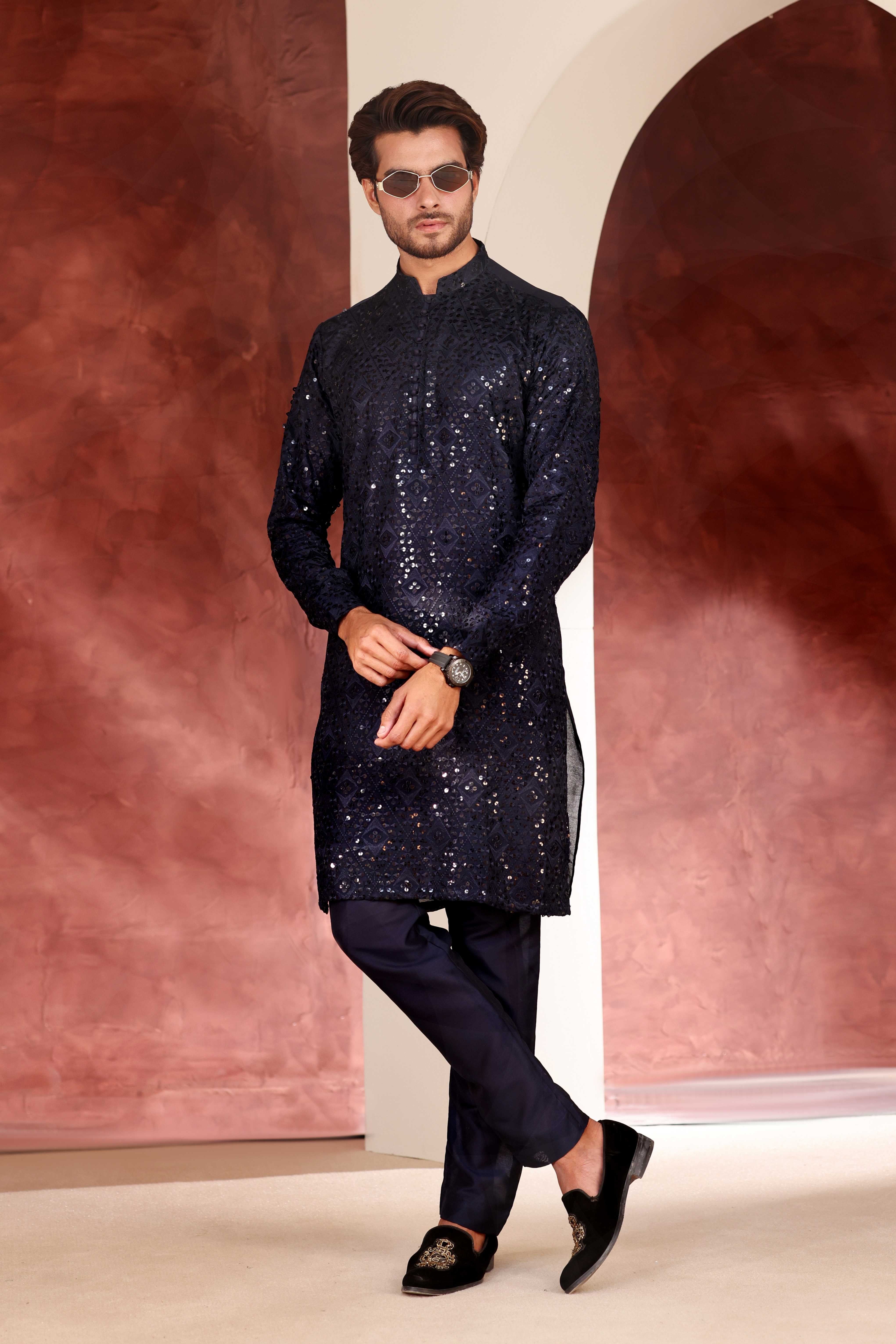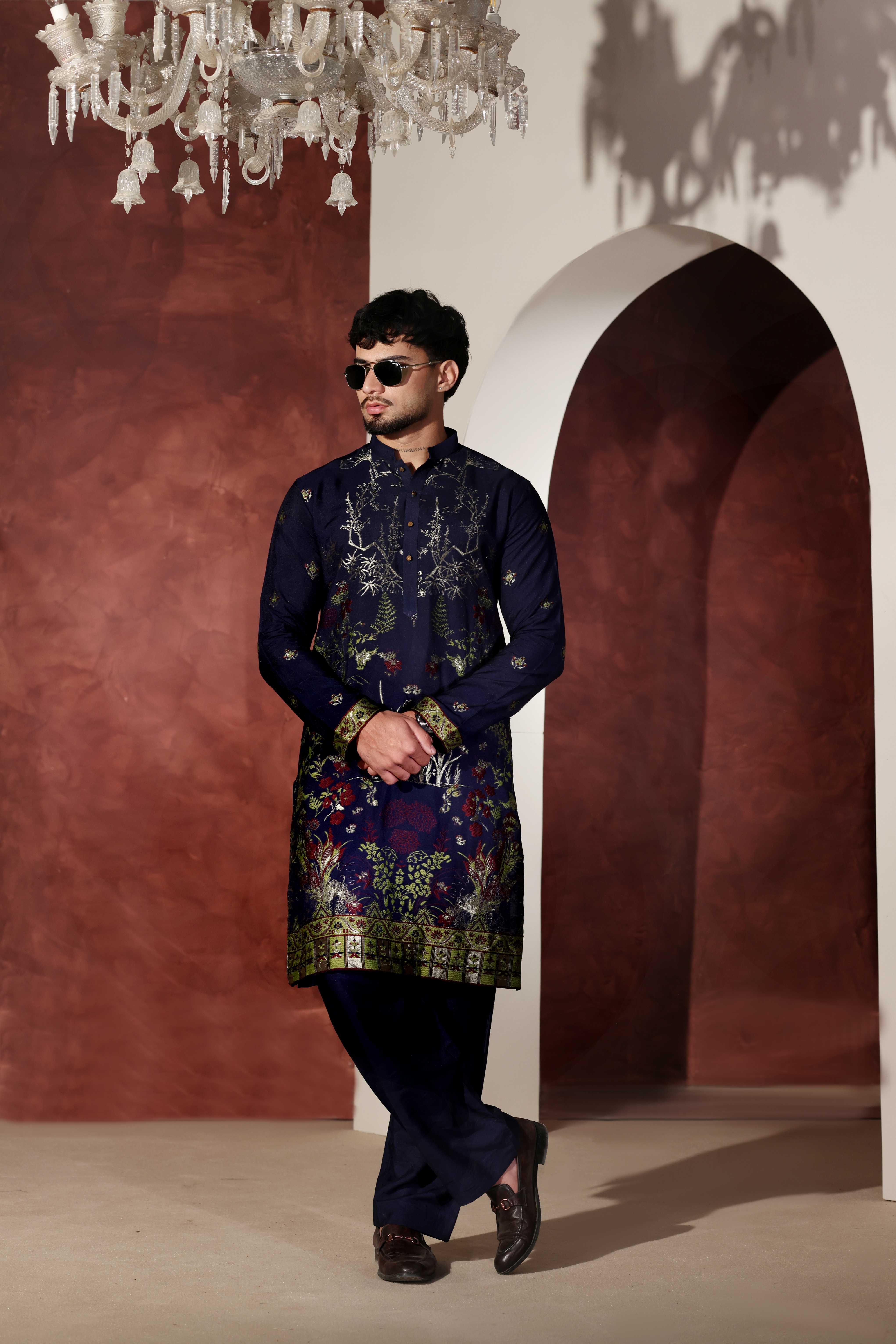Elevate your wardrobe with this stunning Ink Blue Chikankari Kurta, a timeless piece that celebrates traditional craftsmanship. The intricate hand-embroidered chikankari work adds delicate elegance to the rich ink blue fabric, creating a sophisticated look...