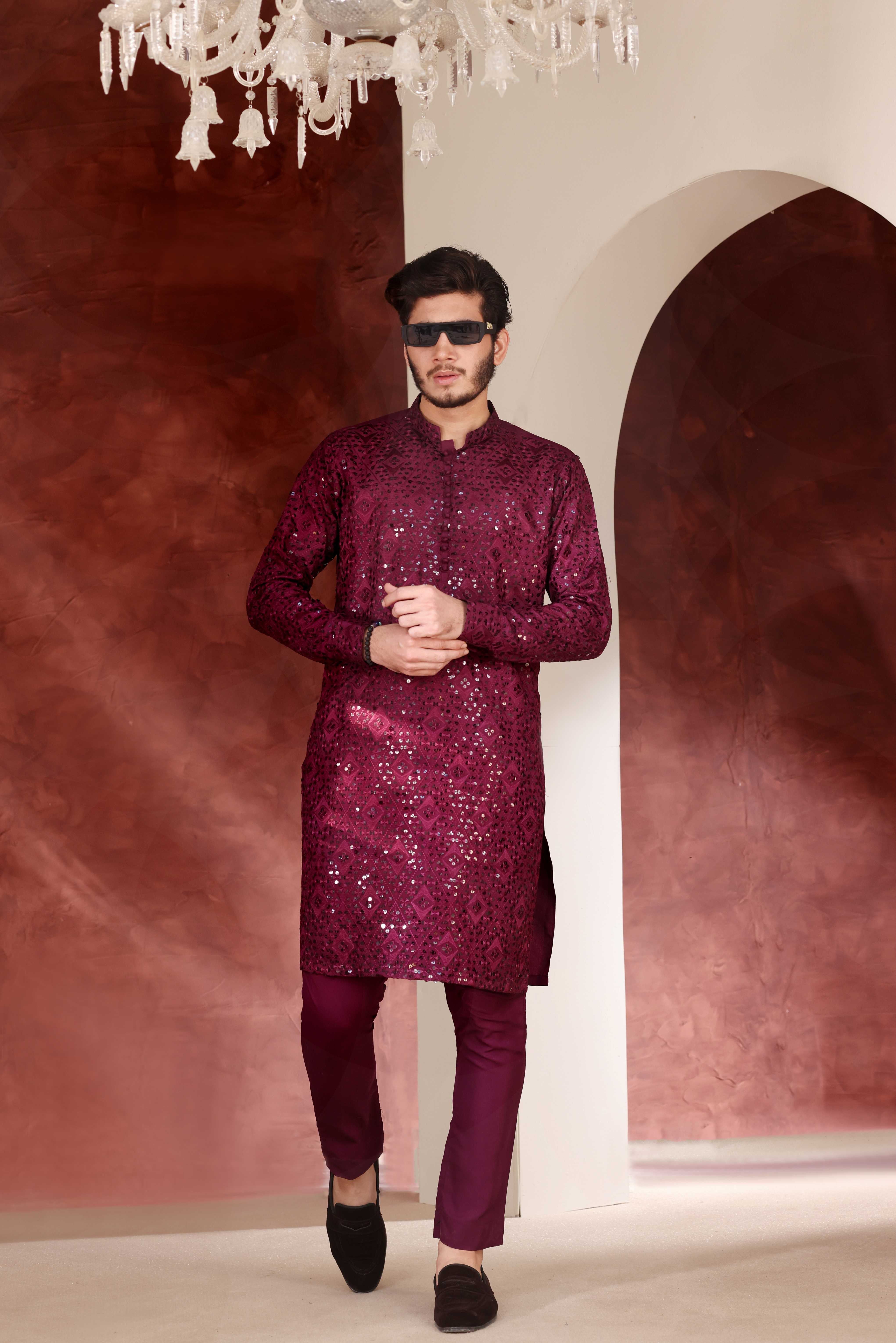 Elevate your wardrobe with the CK 772 Burgundy Chikankari Kurta, a timeless piece that celebrates traditional craftsmanship. This elegant kurta features intricate chikankari embroidery, a centuries-old hand-embroidery technique that adds delicate detailing and sophistication. The...