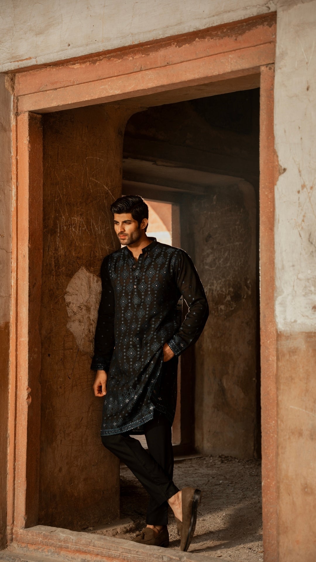 Elevate your style with our MR 65 White Mirror Work Kurta For Men. This elegant kurta features meticulous mirror work, adding a touch of sophistication to your ensemble. Featuring a stylish white color, this kurta is perfect for any occasion. Upgrade your wardrobe today and experience the benefits of effortless style.