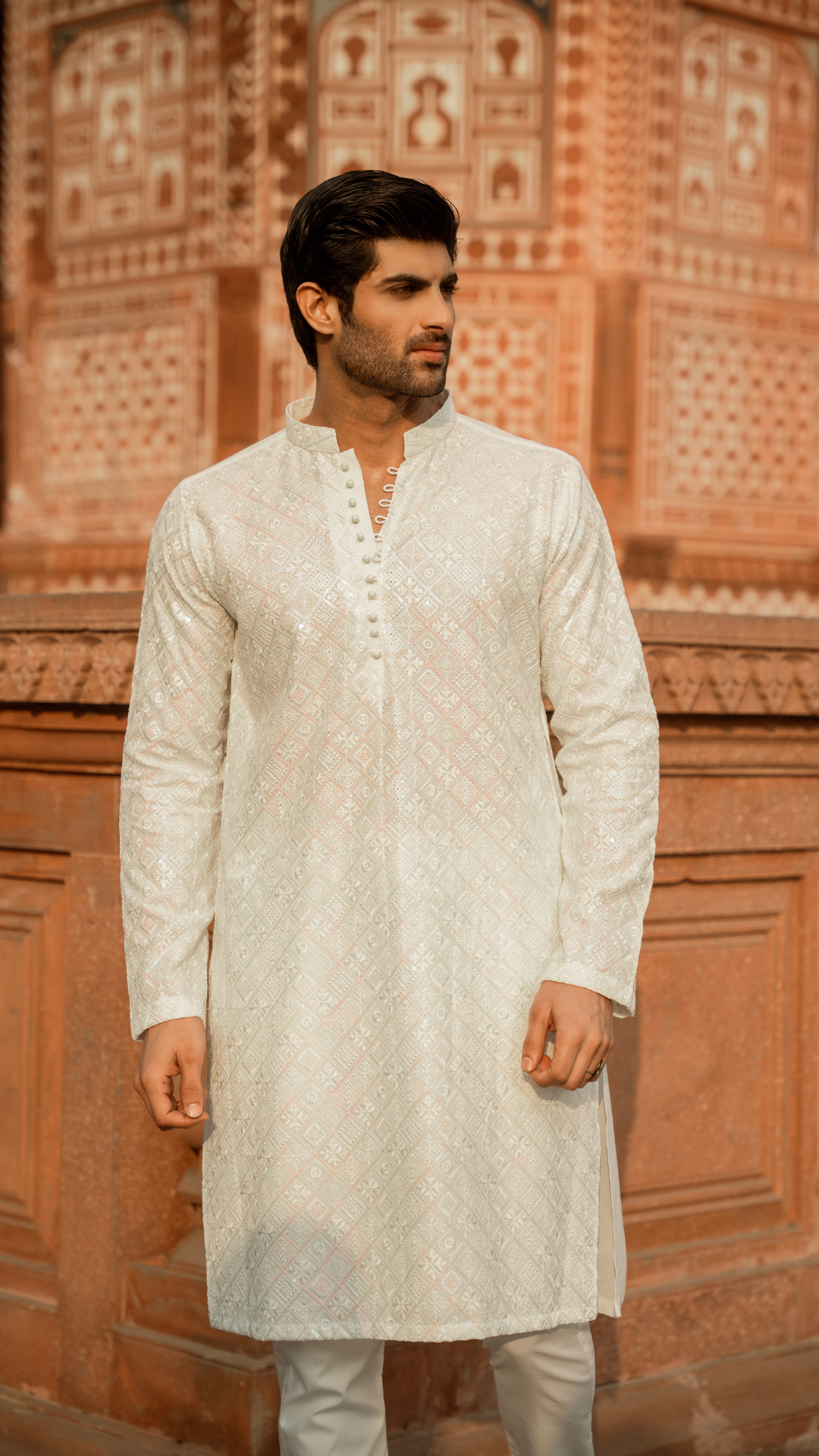 The MR 72 Mirror Work Kurta For Men is a stylish and versatile addition to any wardrobe. Its intricate mirror work adds a touch of elegance, while the high-quality material ensures durability and comfort. Perfect for formal events or casual outings, this kurta combines traditional design with modern flair.