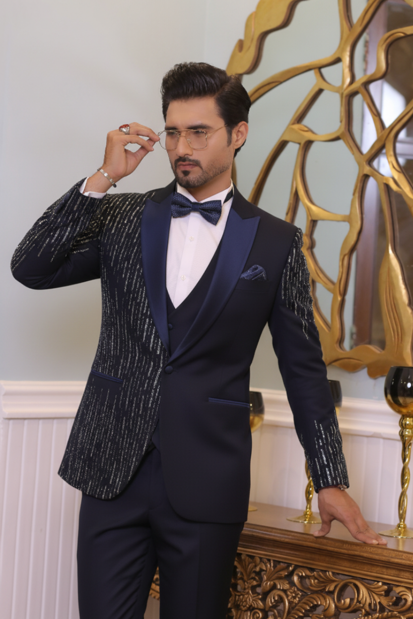 Elevate your wedding day style with this White Hand Work Tuxedo, designed to blend tradition and elegance effortlessly. Expertly crafted with intricate handwork, it adds a refined touch that ensures you stand out with grace. Perfect for the special occasion, this tuxedo combines timeless white fabric with detailed artistry, providing both comfort and sophistication that lasts throughout your celebration.